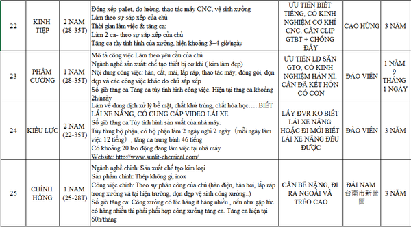 Tuyển dụng với rất nhiều cơ hội lớn dành cho các bạn lao động đang tìm kiếm cơ hội việc làm tại ĐÀI LOAN
