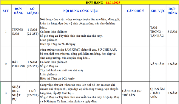 TỔNG HỢP ĐƠN HÀNG T2 THÁNG 1 - 2026Tuyển dụng với rất nhiều cơ hội lớn dành cho các bạn lao động đang tìm kiếm cơ hội việc làm tại...