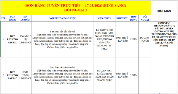 Tuyển dụng với rất nhiều cơ hội lớn dành cho các bạn lao động đang tìm kiếm cơ hội việc làm tại ĐÀI LOAN